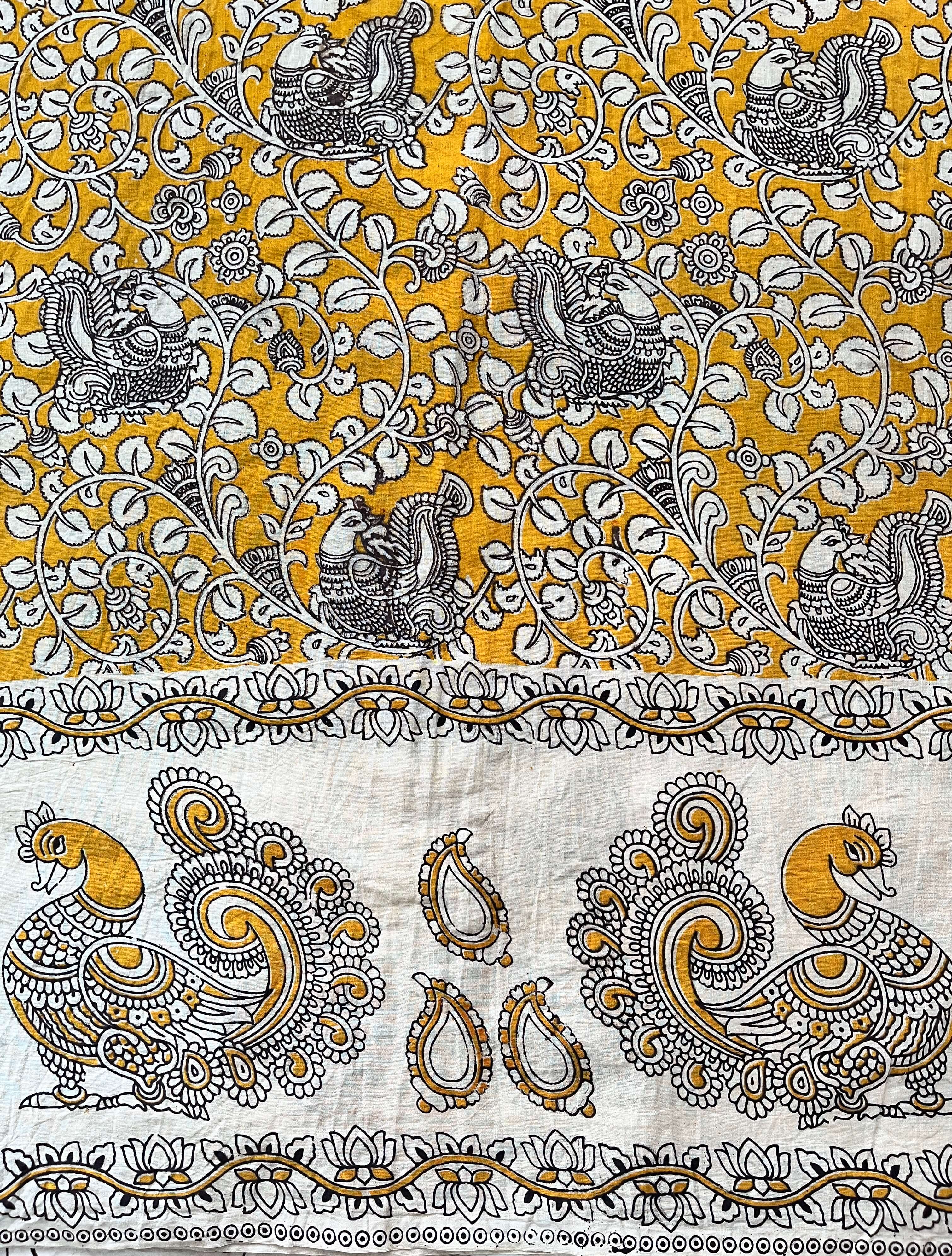 We take pride in offering sarees that are not just pieces of clothing but works of art. Our Kalamkari sarees are crafted from the finest fabrics, ensuring a luxurious feel and timeless appeal.