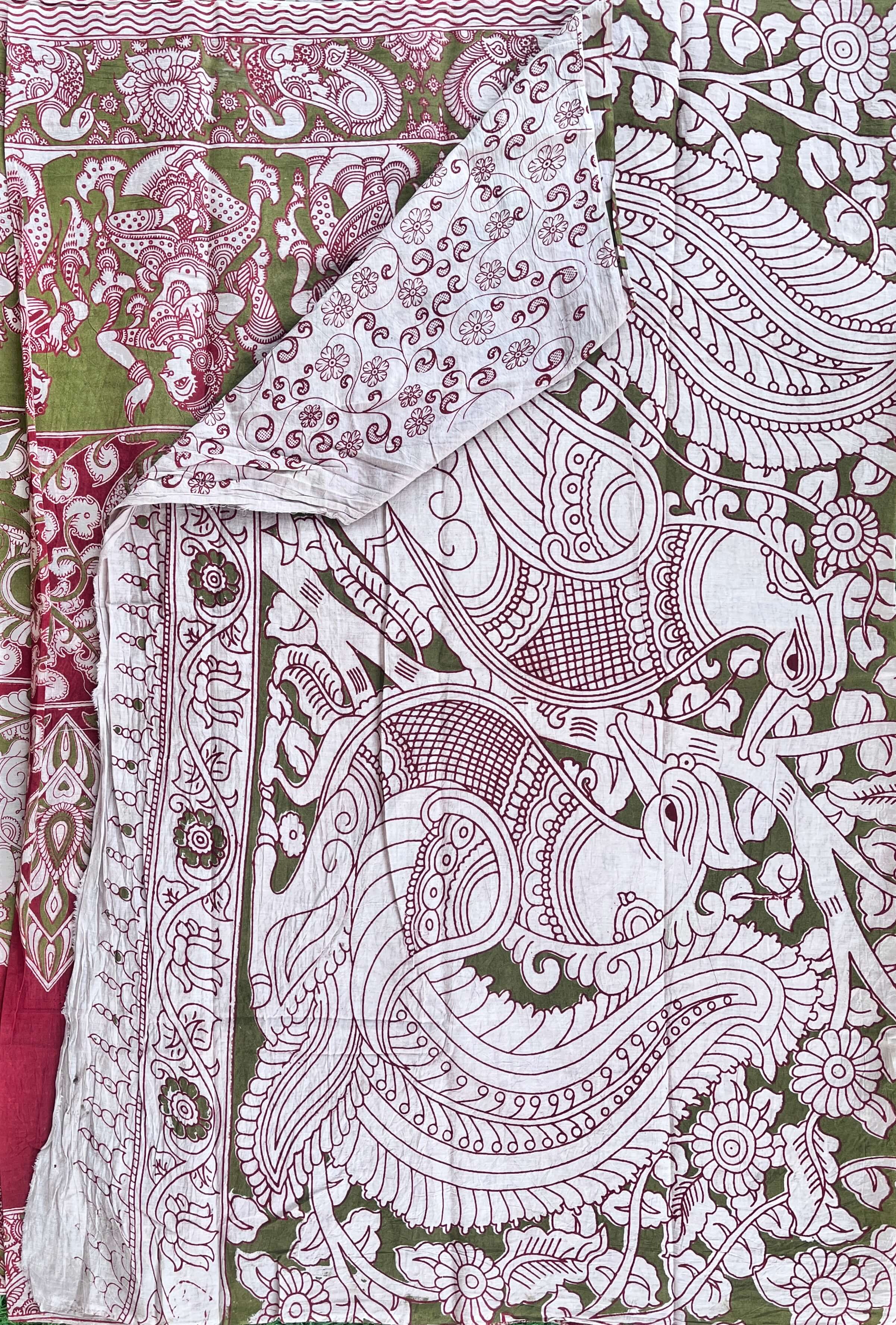 We take pride in offering sarees that are not just pieces of clothing but works of art. Our Kalamkari sarees are crafted from the finest fabrics, ensuring a luxurious feel and timeless appeal.