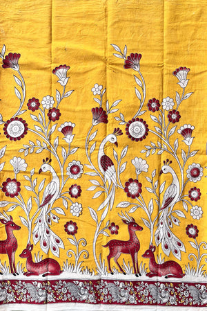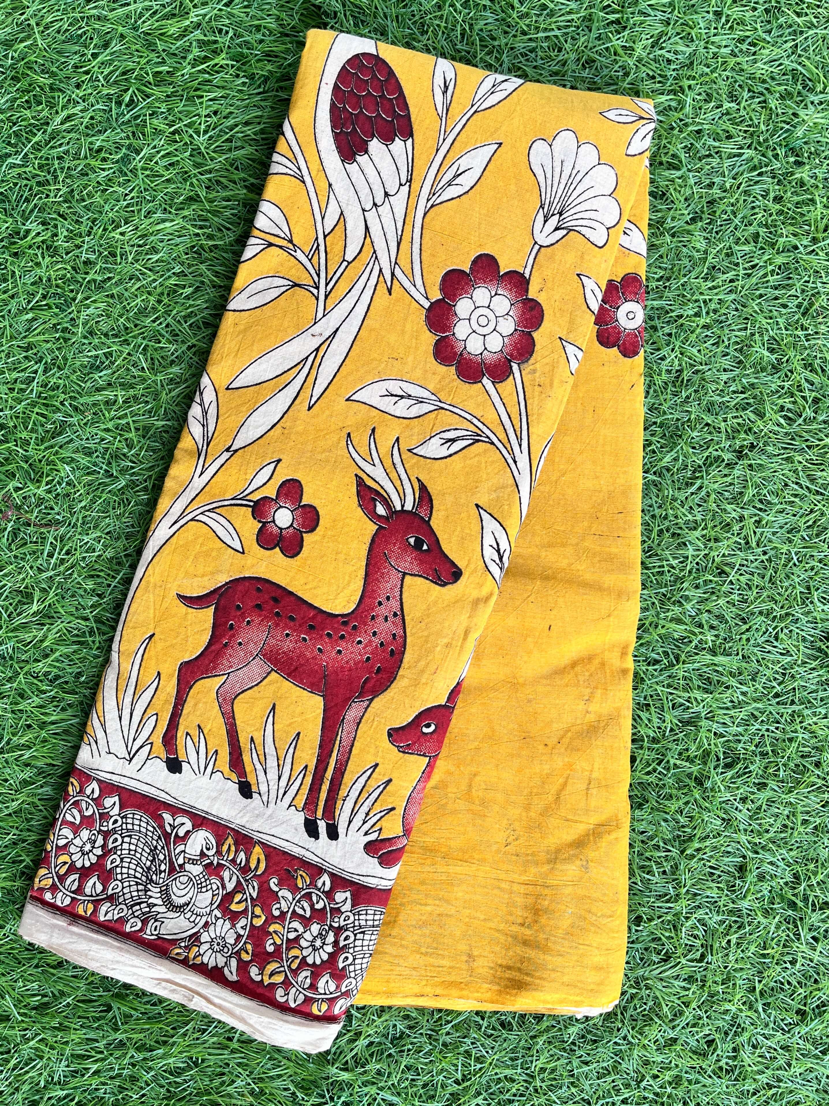 We take pride in offering sarees that are not just pieces of clothing but works of art. Our Kalamkari sarees are crafted from the finest fabrics, ensuring a luxurious feel and timeless appeal.