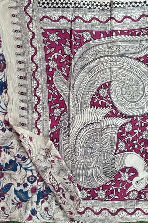 We take pride in offering sarees that are not just pieces of clothing but works of art. Our Kalamkari sarees are crafted from the finest fabrics, ensuring a luxurious feel and timeless appeal.