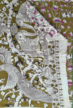 We take pride in offering sarees that are not just pieces of clothing but works of art. Our Kalamkari sarees are crafted from the finest fabrics, ensuring a luxurious feel and timeless appeal.