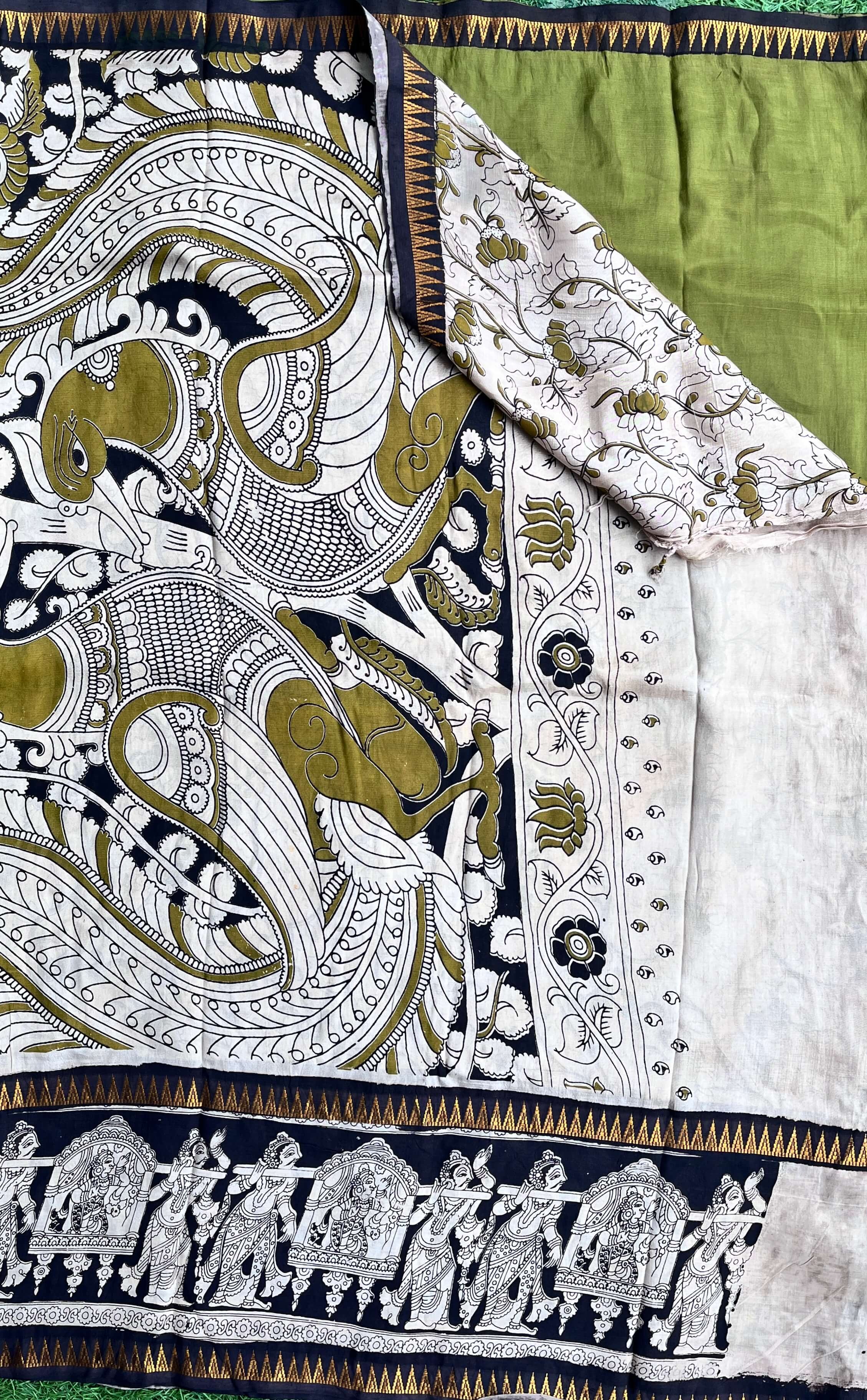 Kalamkari Mangalagiri Silk Gap Border Saree-KDGB-SP-M044