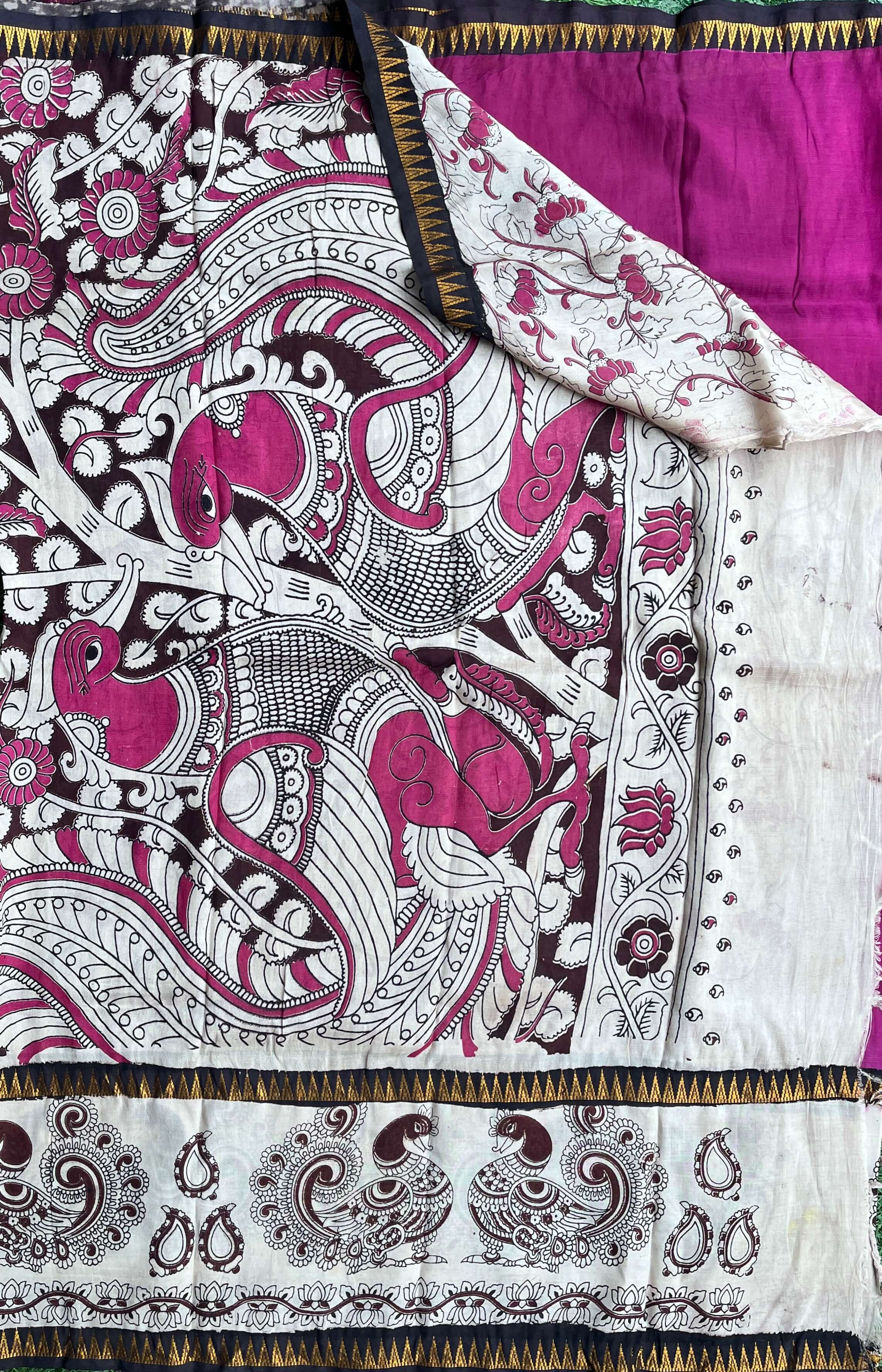 We take pride in offering sarees that are not just pieces of clothing but works of art. Our Kalamkari sarees are crafted from the finest fabrics, ensuring a luxurious feel and timeless appeal.